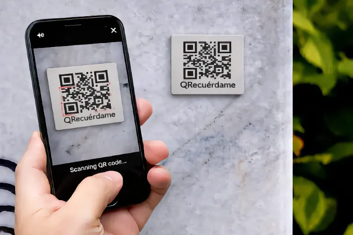 Coloque su letrero QR en una lápida, urna, monolito, banco o árbol conmemorativo. Escanee el código para ver las fotos, vídeos o historias. Mantenga viva la historia de su ser querido.